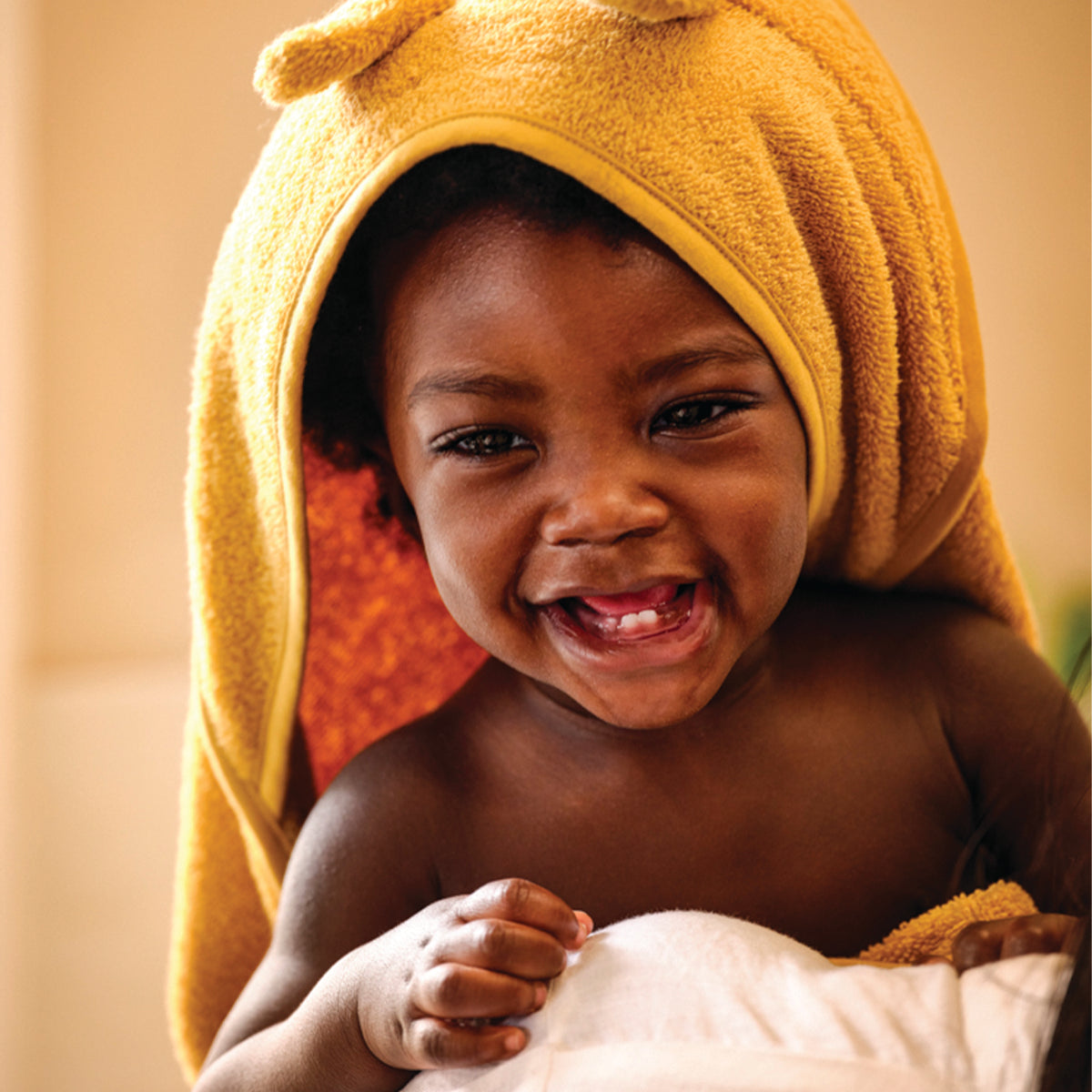 Our Cotton woodland animal hooded towel is perfect for keeping your little one warm and dry after bath time. Woven from soft and absorbent cotton, it’s gentle on even the most sensitive skin and features adorable bunny ears on the hood. Our kids’ towels and matching bath mitts come in four beautiful hues, pictured here in Buttercup, each with an embroidered woodland motif in the corner.
